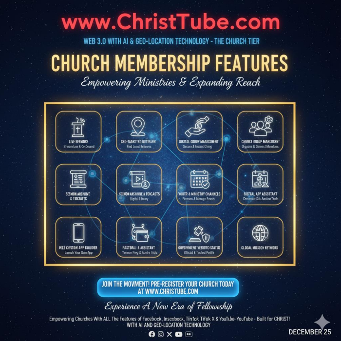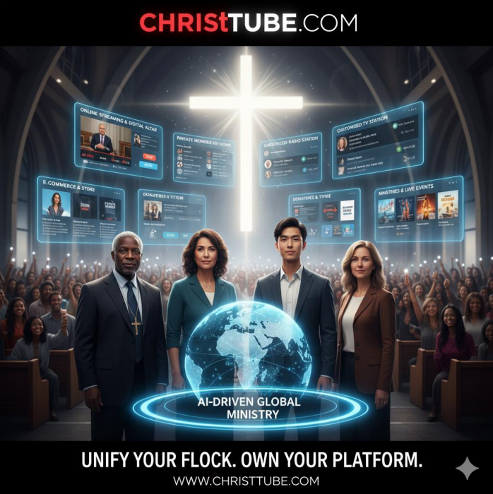- Personalized Digital Pulpit: Host your sermons, teachings, and devotionals through ChristTube.tv (video) and ChristTube.fm (audio), creating a comprehensive library accessible to your flock anywhere, anytime.